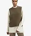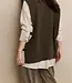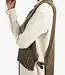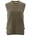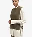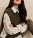 Deze grofgebreide spencer is uitgevoerd in een normale, iets langere pasvorm en heeft een ronde hals. De grove ribstructuur zorgt voor een warme, stoere uitstraling. De leren gespen aan de zijkanten geven het item een modern accent en maken het perfect om gelaagd te dragen over een blouse of coltrui
