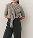 Deze trui met korte mouwen is uitgevoerd in een zachte gebreide stof en heeft een normale pasvorm met ronde hals. Het vaste sjaaldetail dat over de schouders valt en aan de voorkant gestrikt is, geeft het item een speels en trendy accent. Ideaal voor een casual maar doordachte look.