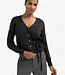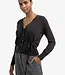 Dit fijne vest is gemaakt van een zachte gebreide stof en is afgewerkt met een diepe V-hals, knoopsluiting en een elegant strikdetail in de taille. De lange mouwen en ribboorden zorgen voor een comfortabele, normale pasvorm. Een veelzijdig item dat je zowel casual als gekleed kan dragen. Het model is 176 cm en draagt maat S.