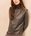 Deze moderne top is gemaakt van soepel imitatieleer en heeft een opstaande kraag met een korte ritssluiting. Het mouwloze ontwerp en de rechte pasvorm zorgen voor een stoere en minimalistische look. Perfect te combineren met een blouse of trui voor een gelaagde stijl.