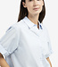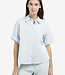 Deze luchtige blauwe blouse is gemaakt van katoen en heeft korte mouwen met een omgeslagen detail. De klassieke kraag en losse pasvorm geven een tijdloze uitstraling. De blouse valt op heuplengte en sluit met knopen aan de voorkant. Perfect te combineren voor een casual of geklede look.