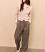 Deze elegante broek is gemaakt van een zachte geweven stof en heeft een hoge taille, wijde pijpen en vrouwelijke plooidetails aan de voorzijde. De pasvorm is comfortabel en stijlvol, perfect voor zowel een casual als zakelijke look. Afgewerkt met steekzakken en paspelzakken achter.