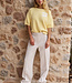 Deze elegante broek is gemaakt van een geweven stof in een losse pasvorm. Het model heeft een hoge taille en wijde pijpen, wat zorgt voor een flatterend en tijdloos silhouet. Subtiele stiksels langs de zijnaden geven een verfijnd detail. Afgewerkt met steekzakken, riemlussen en een klepzak aan de achterkant. Het model is 175 cm en draagt maat 36.