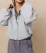 Dit comfortabele jasje is ontworpen met een subtiel ballonvormig silhouet dat wordt geaccentueerd door de elastische zoom. Het heeft een opstaande kraag, verlaagde schoudernaden, lange mouwen en een sluiting met matte drukknopen. De zachte geweven stof en minimalistische uitstraling maken het perfect voor een moderne, casual look. Het model is 174 cm en draagt maat 36.