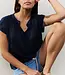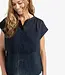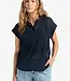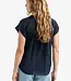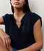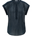 Deze luchtige blouse is gemaakt van een soepele, semi-transparante stof met een verfijnde structuur. Het model heeft een korte knoopsluiting, een ronde polokraag en kapmouwen die zorgen voor een comfortabele pasvorm. De subtiele plooien op de rug geven een vrouwelijke touch. Perfect voor warme dagen.