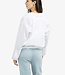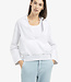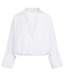 Deze witte blouse is ontworpen met lange mouwen, een diepe V-hals en een elegante kraag. De elastische ballonzoom geeft een moderne, speelse twist en zorgt voor een subtiele cropped look. Afgewerkt met brede manchetten voor een verfijnd detail. Gemaakt van een luchtige, zachte stof perfect voor een stijlvolle en comfortabele outfit.