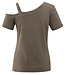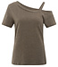 Dit comfortabele t-shirt heeft een asymmetrisch design met een afhangende schouder en een stijlvol bandje. Gemaakt van een zachte, stretchy stof en voorzien van korte mouwen en een ronde halslijn. De normale pasvorm zorgt voor een casual en moderne uitstraling. Perfect te combineren met een jeans of rok voor een speelse look.