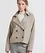 Deze elegante korte jas is gemaakt van een zachte wolmix en heeft een rechte pasvorm. De gewatteerde, glanzende achterkant en zijkanten voegen een modern accent toe. Het ontwerp is voorzien van een dubbele knoopsluiting, lange mouwen en een klassieke kraag. Perfect te combineren voor een stijlvolle en warme look in het tussenseizoen.