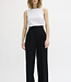 Een extra hoge klassieke getailleerde broek met wijde pijpen en een gevormde pasvorm rond de taille en de heupen. De broek is voorzien van twee zakken aan de voorkant en plooien aan de voorkant waardoor een prachtig silhouet ontstaat. Voor een extra losse pasvorm raden wij je aan een maat groter te nemen en te stylen met een stoer riempje in de taille.