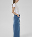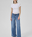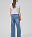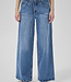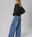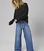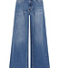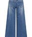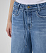 Deze damesjeans met wijde pijpen en striksluiting biedt een comfortabele pasvorm en moderne uitstraling. Het vijfzakkenmodel en de volledige lengte maken hem veelzijdig voor dagelijks gebruik.