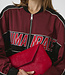 Bomberjack met opvallende 'HUMAN RACE' tekst, losse boxy fit, gladde satijn-finish, ribkraag en manchetten, volledig rits aan de voorkant.