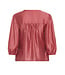 Dit elegante shirt is gemaakt van een lichtgewicht, subtiel glanzende stof die mooi valt. Het heeft een vrouwelijke V-hals, knoopsluiting aan de voorkant en zachte plooitjes bij de schouders voor een verfijnde en moeiteloze uitstraling. Ontworpen met 3/4-mouwen afgewerkt met zachte elastische boorden, waardoor het geschikt is voor zowel dagelijks gebruik als meer verzorgde gelegenheden.