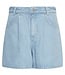 Korte denim shorts van lichtgewicht kwaliteit. Ontworpen met een hoge taille en een vaste tailleband met riemlussen. Knoop- en ritssluiting. Vijf zakken aan de voor- en achterkant. Rechte pijpen met afgewerkte zoom.
