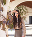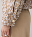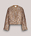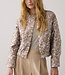 Gevoerd boxy jasje gemaakt van een glanzend jacquard stof met bladerpatroon en afgewerkt met verschillende fancy knopen. De elastische boord aan de onderkant zorgt voor een licht bol silhouet. Het jasje is gevoerd met een glanzende binnenkant.