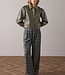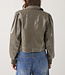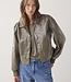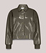 Glanzende lakjas met aangesloten fit, kraagje, pofmouwtjes met gebreide boorden en steekzakken aan de voorkant. Een fijn jasje voor binnen én buiten.