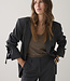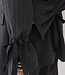 Ruimvallende boyfriend blazer met krijtstreep en klepzakjes aan de voorkant. Dankzij het elastiek en koordje draag je de mouwen hoe jij wilt: los, omgeslagen of opgestroopt.
