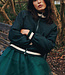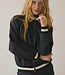 Bomberjack met raglanmouwen, uitgevoerd in een rijke glitterjacquard met zachte voering. Het jack heeft driekleurig gebreide boorden met lurex en strookzakken aan de voorkant.