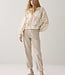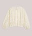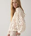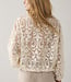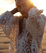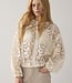 Transparant bomberjasje van een stevige kantkwaliteit. De bomber heeft een ballonvormige onderkant met elastiek en een blokrits.