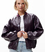 Vegan leren jas met lakafwerking en elastische zoom voor een gemakkelijke en comfortabele tuck-in look.