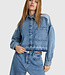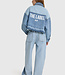 Geef je denim look een stoere twist met deze licht cropped blouse, gemaakt van zacht en soepel denim. Het tweekleurige denimdesign en de onafgewerkte, raw-cut zoom zorgen voor een rauwe, nonchalante uitstraling. Op de achterkant prijkt een opvallende ALIX THE LABEL print die de blouse extra karakter geeft.