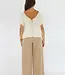 Een van de favoriete breisels van dit seizoen is de Gigas top. De top heeft een losvallend model met een gestrikt detail op de achterzijde en is voorzien van een subtiele gouden sparkle.