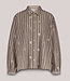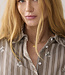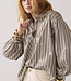 Deze A-lijn blouse is gemaakt van stevige poplin-katoen en versierd met een allover patroon van pailletten. Het model heeft normale mouwen met smalle boordjes. Het streepdessin is op de knopenlijst en schouderpas schuin geplaatst.