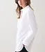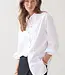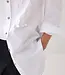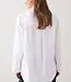 Overhemdblouse van stevige poplin met smokingdetails. Afgewerkt met lasercut stroken en diamantknoopjes. Ook op de manchetten zijn lasercuts en een knoopje toegevoegd.