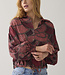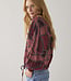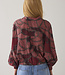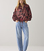 Blouse van een lichte viscose-katoenkwaliteit in een opvallende print. De blouse heeft een vleermuismouw met gesmokte manchetten en een achterpas met extra rimpels voor volume. De onderkant is verstelbaar met een koordje.