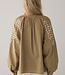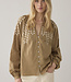 Blouse van linnenlook katoen met fijn borduurwerk. De blouse heeft een ruimvallende pasvorm, knoopjes met lusjes en plooitjes langs de boorden.