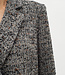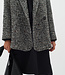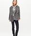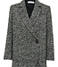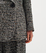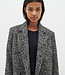 Blazer met visgraatmotief, klassieke revers en enkele knoopsluiting. De blazer heeft twee voorzakken en een losse pasvorm. De blazer heeft een bijpassende rok.