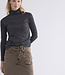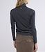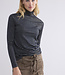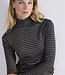 Coltruitje met lange mouwen van een metallic gestreepte lurex ribstof. De top heeft een rechte snit.