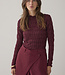 Top van een rekbare, transparante jersey uitgevoerd in een ruitjespatroon. De top heeft lange mouwen, een ronde hals en een aangesloten pasvorm. Alle zomen zijn afgewerkt met fijne babylock-stiksels. De top is mooi te combineren met een blazer, gilet of op een Summum Blue Daze jeans.