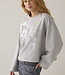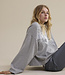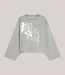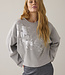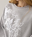Sweater in mid-grey melange met een brushed binnenkant en ultra oversized fit. De trui heeft een wijde ronde hals, kimonomouwen en tonale bloemenborduursels met matte pailletten en kralen. Stylingtip: rol de mouwen twee keer op voor een casual look.
