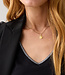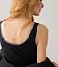 Basic singlet met een feminine fit, uitgevoerd in een zachte stretchstof. De top is reversible en heeft een U-hals aan de ene kant en een V-hals aan de andere kant. Langs de halslijn loopt een fijne glitterrand.