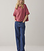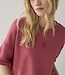 Sweater in een boxy fit met korte mouw en verlaagde schoudernaad, uitgevoerd in een zachte melangekleur. De korte mouwen hebben een vaste omslag. Het Summum-logo staat klein en tonaal middenvoor.