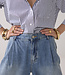 Deze jeans heeft ultrawijde pijpen en is ontworpen in een zachte lightweight denim van 100% katoen. De broek heeft een relaxte fit rond de heupen, bandplooien aan de voorkant en paspelzakken achter.