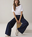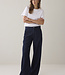 Wide leg jeans van katoen-denim met ingeweven lurex voor een subtiele zilveren shimmer. Uitgevoerd in rinse wassing met pantalon-details, insteekzakken en paspelzakken achter. Ga voor een complete denim look met de bijpassende blouse 2s3381.