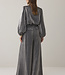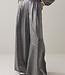 Broek van een rijke viscoseblend met een metallic look en subtiel kreukeleffect. De broek heeft ultra wijde pijpen met dubbele plooien, steekzakken aan de zijkant en strookzakken achter. Feestje? Combineer dan deze broek met de bijpassende top