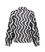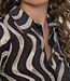 • Print: Opvallende glanzende print met golvende lijnen in een contrasterende metallic tint
