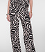 Deze pantalon uit de geisha collectie heeft een grafische swirlpatroon in zwart en zand en geeft deze look een moderne uitstraling. De soepelvallende pasvorm en uitlopende broekspijpen zorgen voor een elegante beweging bij elke stap. Combineer de broek met de bijpassende blouse en je hebt een fijne zomerse outfit.
