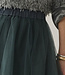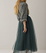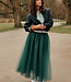 Wijde rok van tule met een lange, volle pasvorm. Het model is gevoerd met viscose en afgewerkt met een satijnen tailleband.
