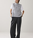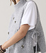 Deze mouwloze spencer heeft een opstaand boordje en striksluiting aan de zijkanten. Gebreid met zachte garen en versierd met insectvormige broches. Dit model is leuk te combineren met een blouse of over de fitted longsleeve 3s5170.