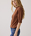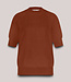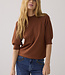 Truitje met opstaand boordje, korte raglanmouwen en een subtiel opengewerkt detail langs de naden. De trui heeft een regular fit en de mouwen hebben een licht pofeffect.