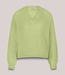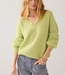 Deze trui heeft een boxy fit en is gebreid in patentsteek in een vrolijke kleur. De trui heeft een V-hals en een lage schoudernaad met lichte pofmouw.