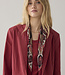 Vierkant sjaaltje van satijnviscose met vintage sjaalprint. Uitgevoerd in de kleuren van de collectie. Het sjaaltje is op verschillende manier te dragen: om tas, hoofd of als riem.