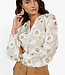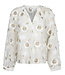 Deze Alanza blouse is een luchtige blouse met een transparante look en subtiel volume in de mouwen. Het model is versierd met wit en goudkleurig bloemenborduursel en heeft een rechte fit. De blouse sluit met een kleine knoop aan de achterkant en is gevoerd op het lichaam voor extra draagcomfort