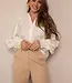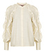 Deze verfijnde blouse is vervaardigd uit een zachte, lichtgewicht stof met een subtiele structuur. De elegante ballonmouwen zijn afgewerkt met speelse ruffles die het ontwerp een vrouwelijke en sierlijke uitstraling geven. Perfect te combineren met zowel jeans als een nette broek voor een stijlvolle look met flair.