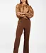 De Chantalle pantalon is één van onze bestsellers. De pantalon heeft een elegant model met klassieke persnaad over het voorpand van de wijde broekspijpen. Dit model heeft een klassiek weggewerkte sluiting die hoog in de heupen valt voor een mooi silhouet. Verder is deze broek voorzien van riemlussen, insteekzakken, twee achterzakken en een blinde zoom. Combineer met bruine blouse Veronne.