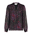 Deze dames blouse heeft een blauwe hartjesprint, een V-hals met een opstaande kraag, lange mouwen en een normale pasvorm. Gemaakt van polyester, combineert deze blouse stijl en comfort.
