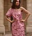 Deze elegante one-shoulder jurk is een absolute eyecatcher. Gemaakt van een luxe jacquard stof met glinsterende lurex accenten, straalt deze jurk pure glamour uit. De volumineuze pofmouw voegt een speels en stijlvol element toe, terwijl de aansluitende pasvorm je figuur prachtig accentueert. Perfect voor feestelijke gelegenheden, gala’s of een avond uit.